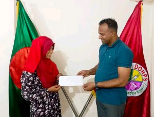 ডপস সদস্য শারমিন পেলো ১০ হাজার টাকার সহায়তা